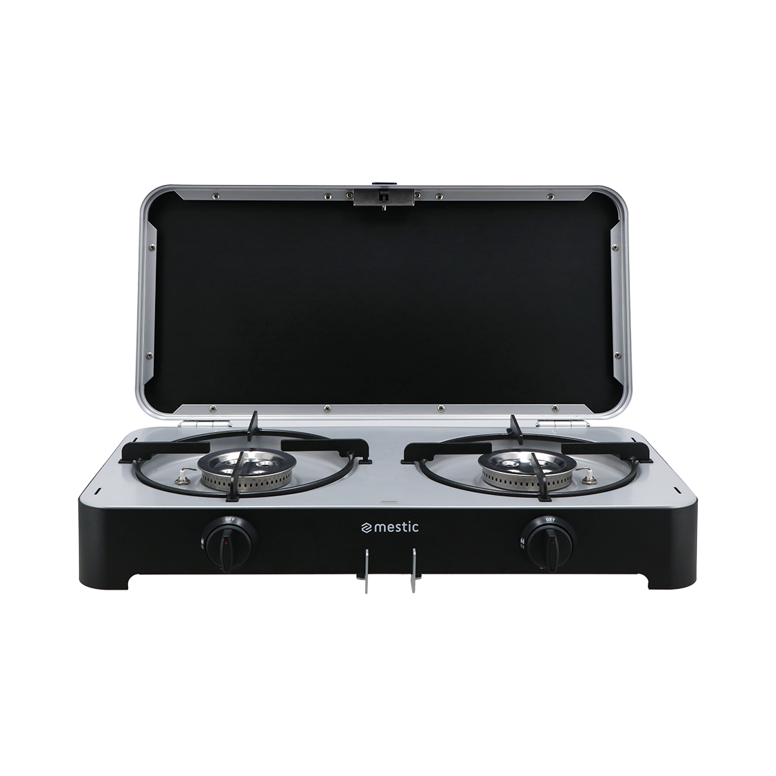Con questo fornello Mestic a due fuochi potrai preparare i piatti più deliziosi in vacanza. Il fornello a gas MGCP-1200 è molto sicuro da usare e rende la cucina in campeggio facile come a casa. Grazie al coperchio, durante la cottura si ha immediatamente un paravento.